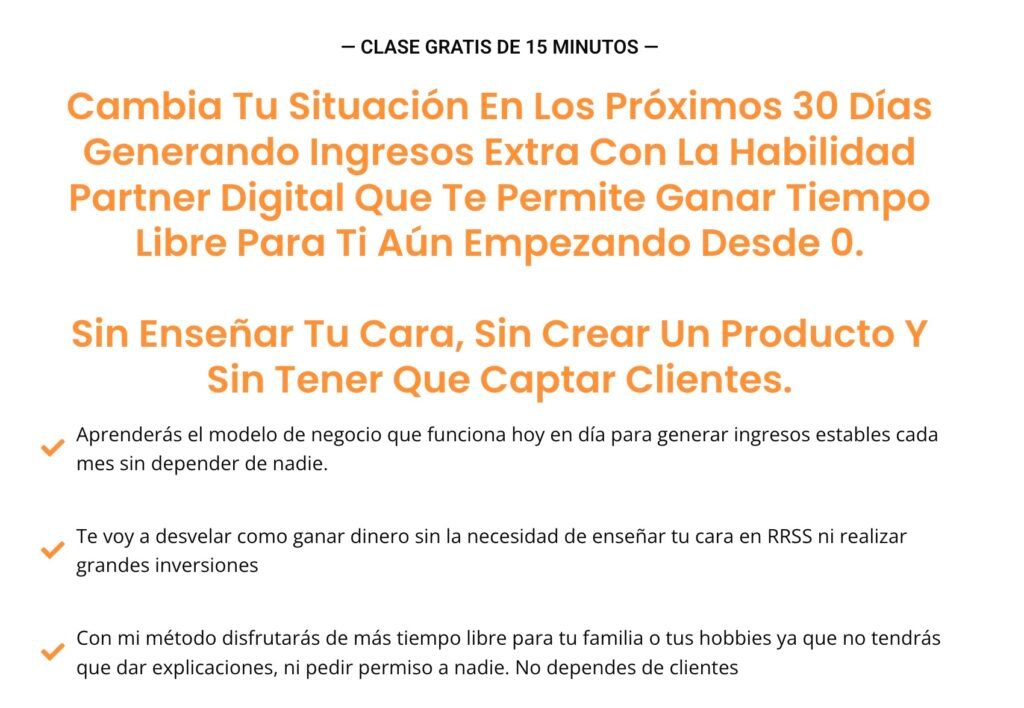 Partner 360 es un curso muy potente, con contenido de muchísima calidad (estrategia, soporte, comunidad, mentorías en directo…). Por eso, el precio tiene que ir acorde con el valor que te llevas.